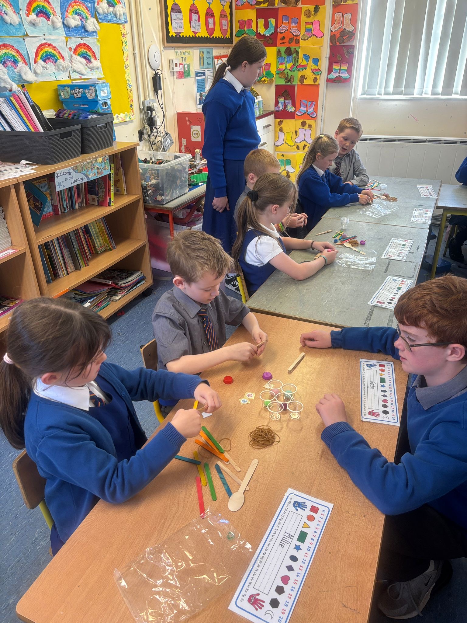 In Science, we made our very own catapults using lollipop sticks and practiced our aim by flinging pom poms across the room. It was great fun testing our accuracy and seeing how far we could make them fly!