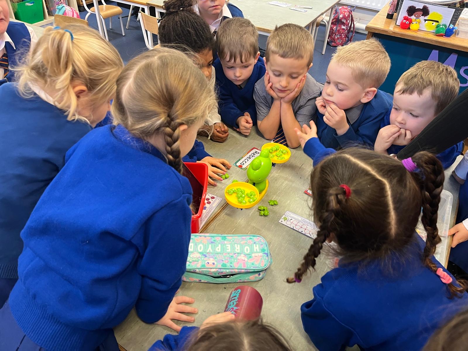 In Maths, we have been learning about numbers, partitioning and combining sets, and we also explored balance and data. We used lots of hands-on materials like cubes, counters, and scales to help us understand. We enjoyed sorting things, counting together, and trying out different ways to make numbers.