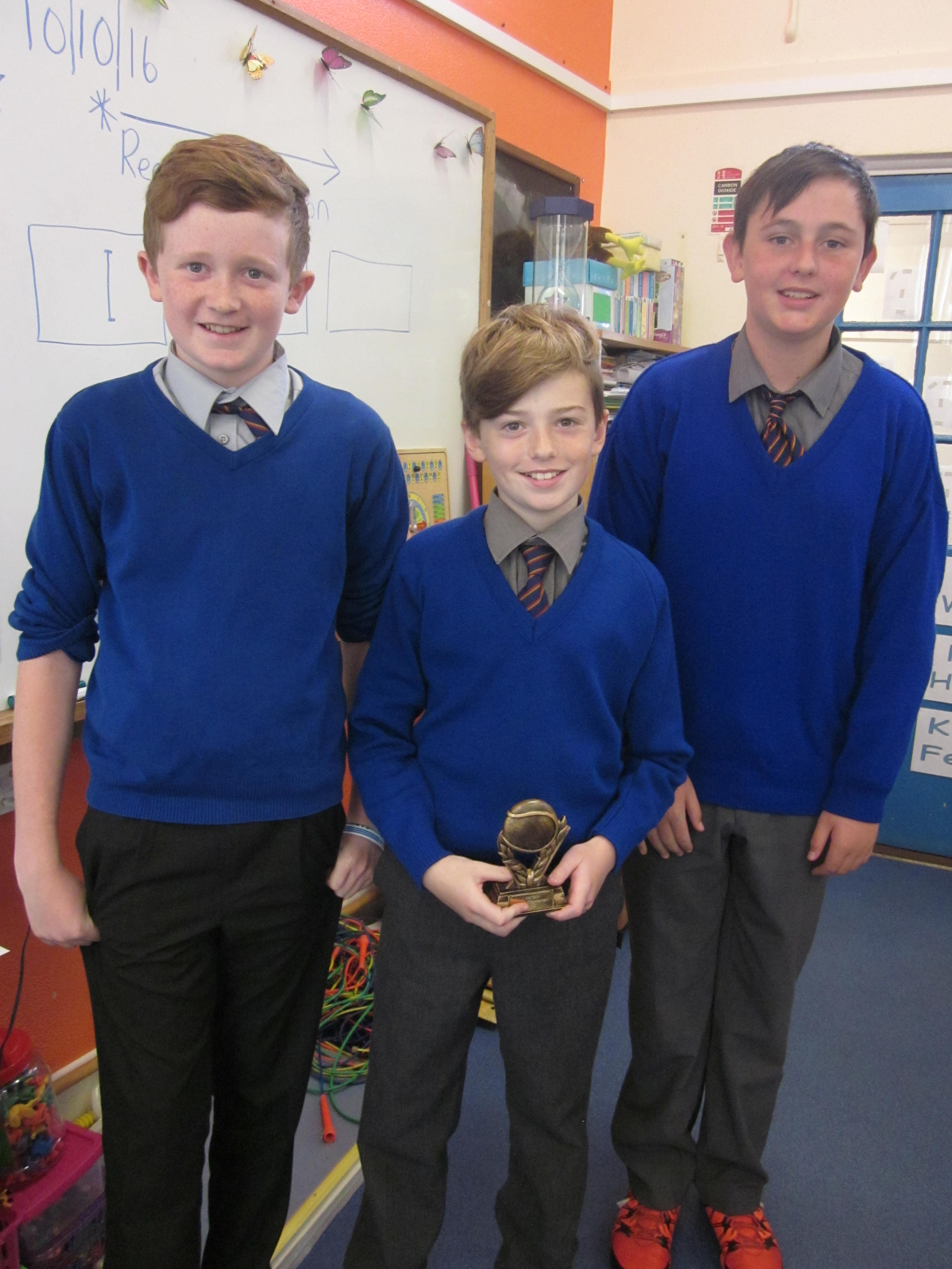 Congratulations to our Sixth Class boys Fionn Mc Cauley, Niall Rushe and Dylan Moloney who were recent winners in the Kildimo Pallaskenry hurling tournament. We look forward to seeing these pupils play with Limerick in the future!